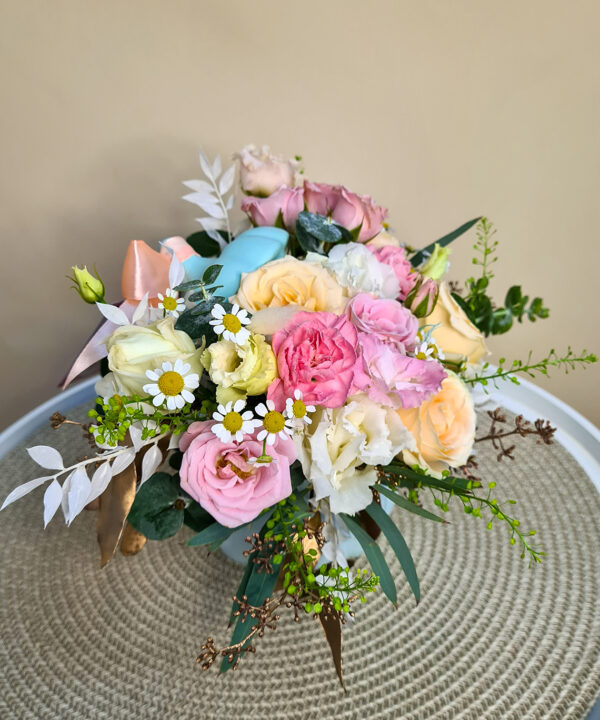 Culoarea sau nuanţa florilor poate să difere în funcţie de disponibilitatea pe stoc. În cazul lipsei pe stoc a unor elemente ale aranjamentului floral, vom înlocui acele elemente (flori/verdeață/ambalaj) cu variante similare ca preț și calitate.