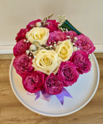 Vrei un aranjament romantic dar totuși nu clasic? Atunci optează pentru un aranjament în cutie inimioară cu trandafiri movi și albi. Acest aranjament poate fi oferit cu ocazii speciale, 1-8 Martie, Sf Valentin, Dragobete sau ori de câte ori vrei să îi spui “te iubesc” prin intermediul florilor.